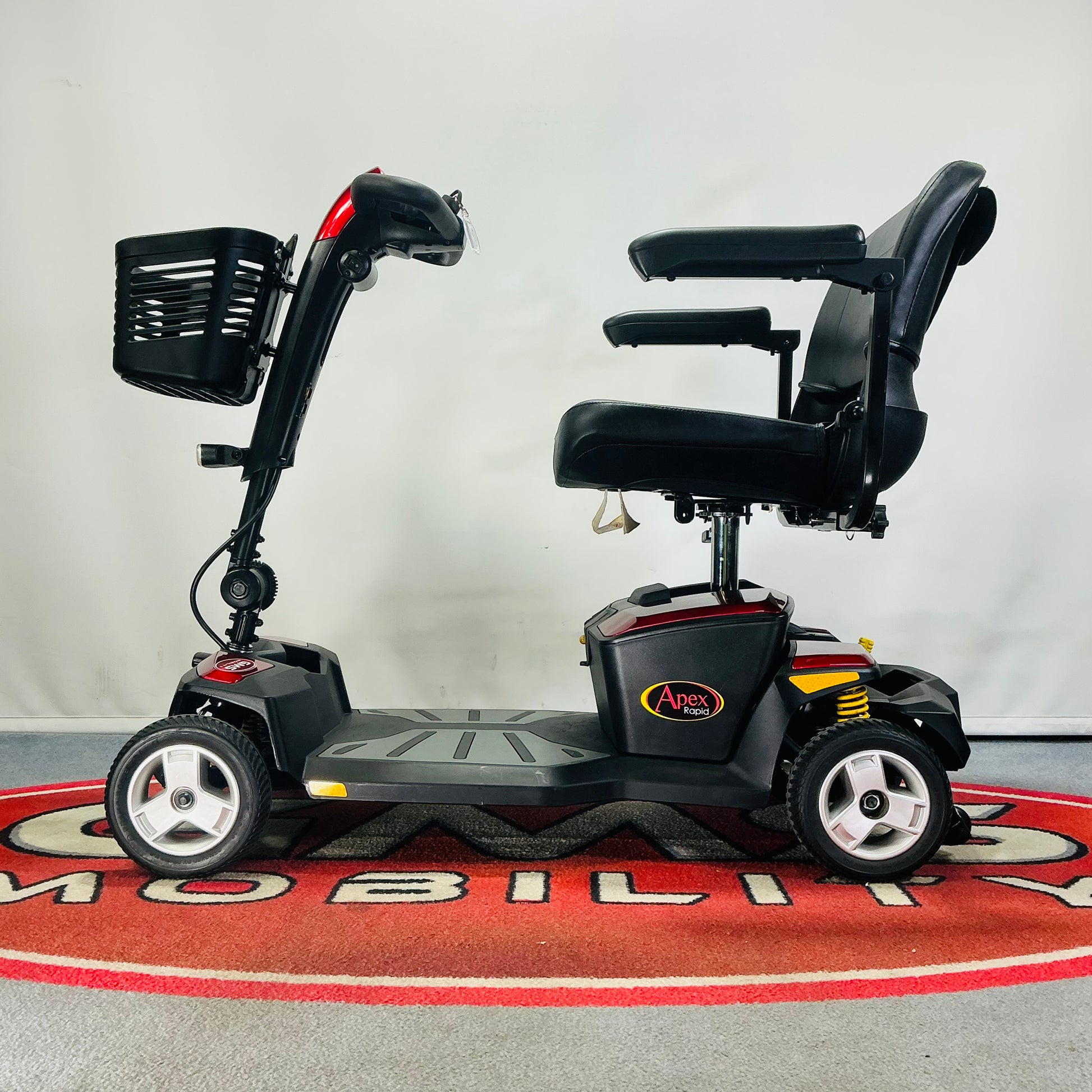 GMS Mobility is pleased to offer for sale, this 2019 Pride Apex Rapid, a transportable 4 mph pavement mobility scooter which comes with fully tested 18ah batteries and charger, manual, Free nationwide fast delivery and a 3-month warranty. Ask us about Insurance and Part Exchange.