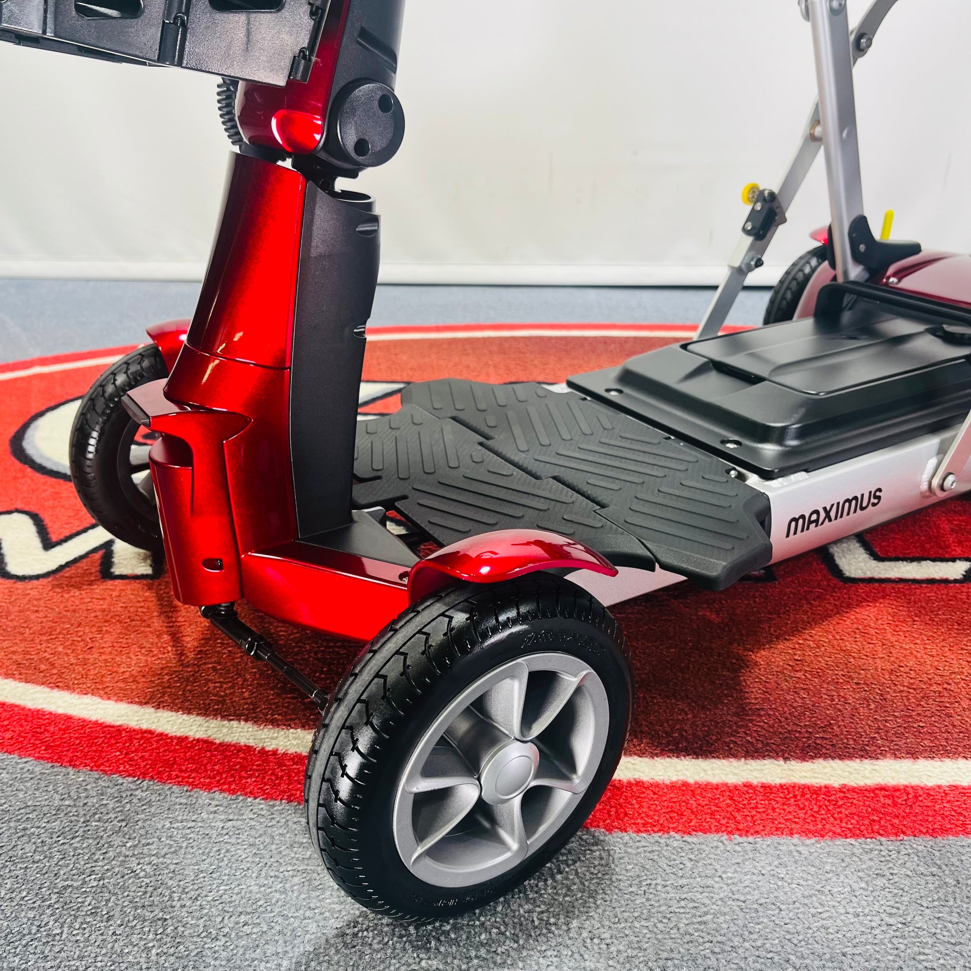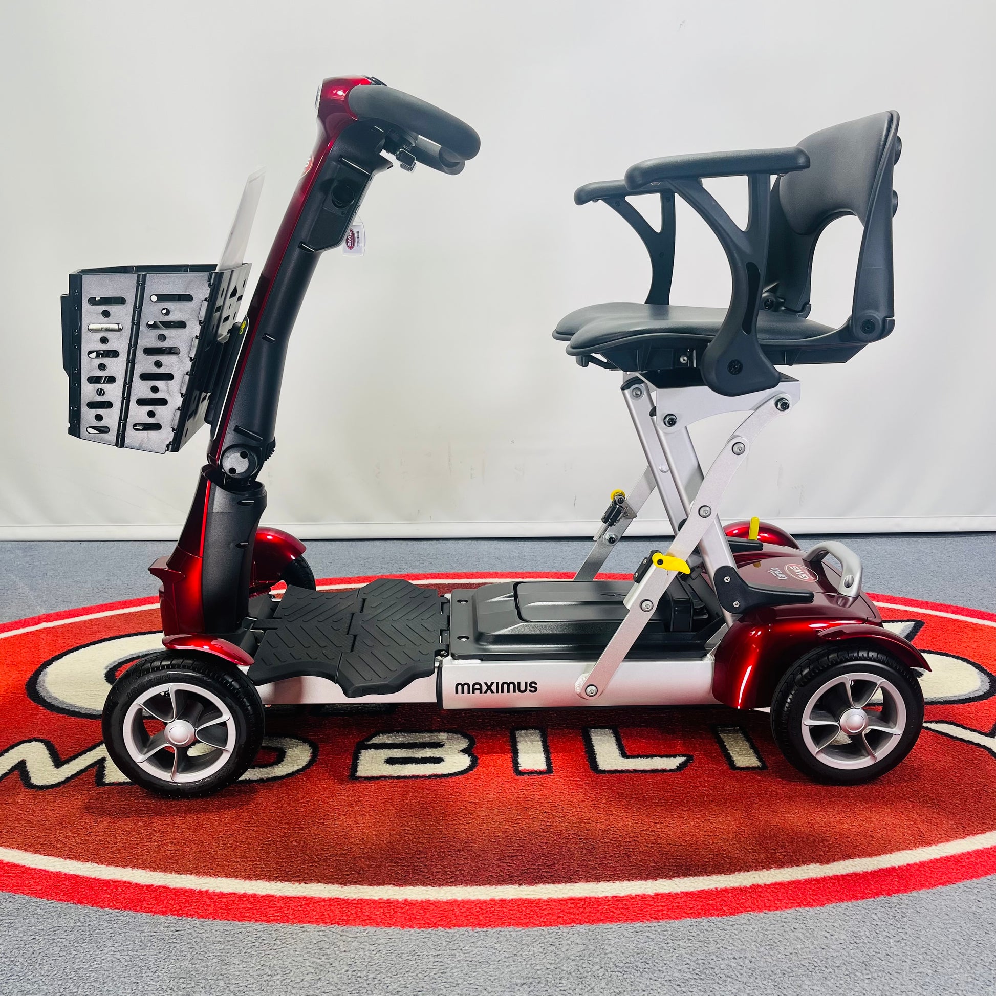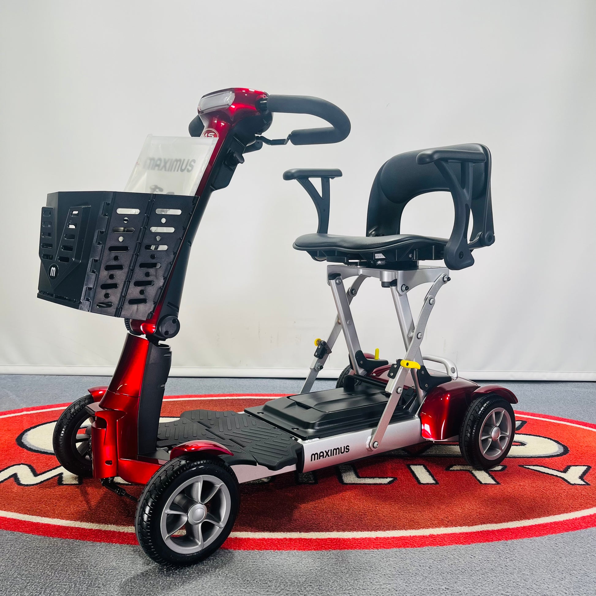 The Maximus might be the bigger brother to the Maximus, but there’s no sibling rivalry here. Both scooters are built to be cleverly compact, with smart designs to make your everyday life easier. Find a compromise that works for you, whether you need the ultra-slim profile of the UK’s lightest folding mobility scooter, or you feel like a little more comfort will go a long way with the Maximus. One thing’s for sure: you won’t be losing out on style. The Maximus Folding Mobility Scooter comes in Metallic Crimson or Onyx, for a design that’s as good to look at as it is to drive.