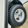 bumpy terrain and the pneumatic tyres securely grip the road. A full