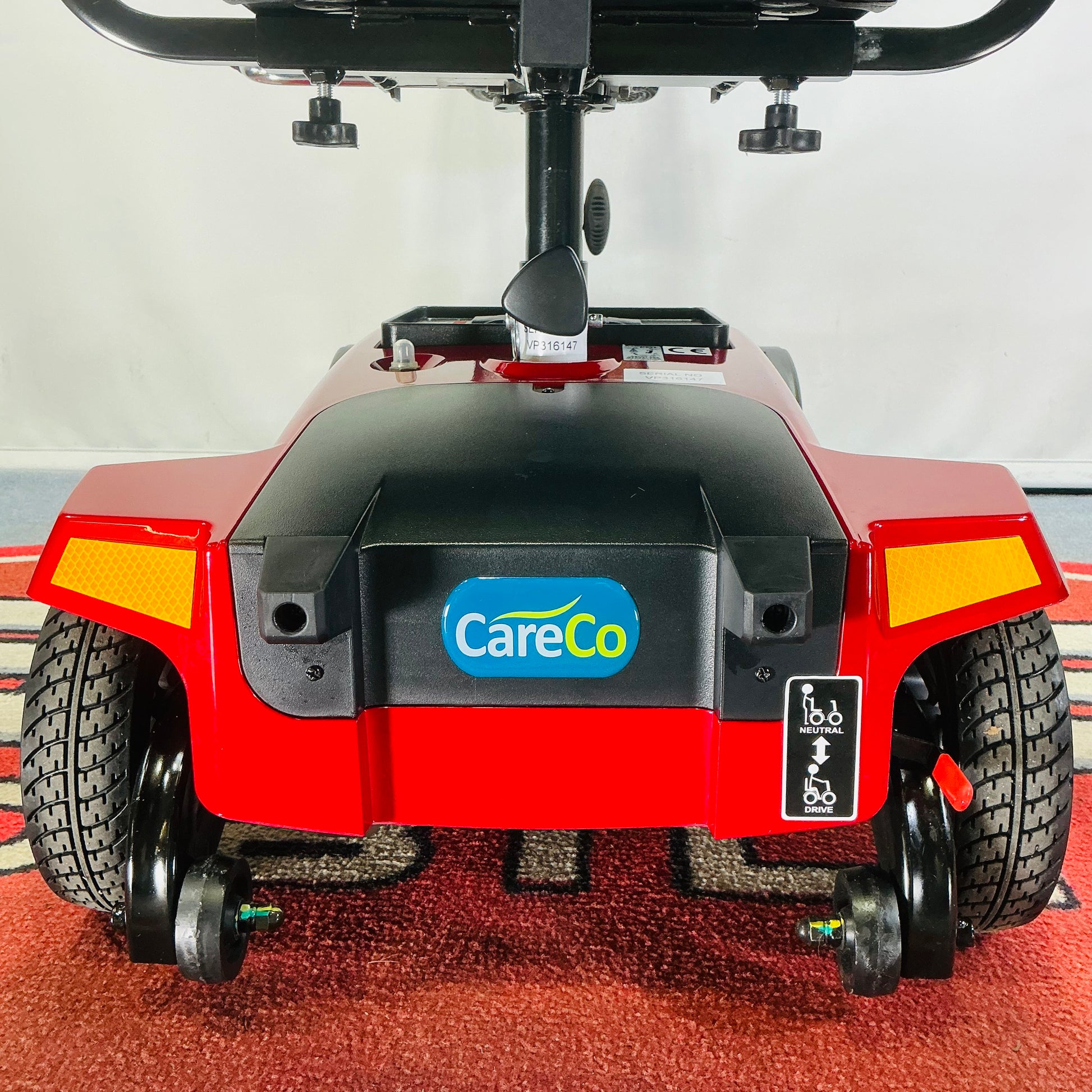 The CareCo Eclipse offers surprising performance too, carrying a maximum weight of 18 stone over 10 miles on a full charge. And because storage can often be an issue when it comes to mobility scooters, the CareCo Eclipse features a clever design which allows the scooter to be safely stored in a vertical position.