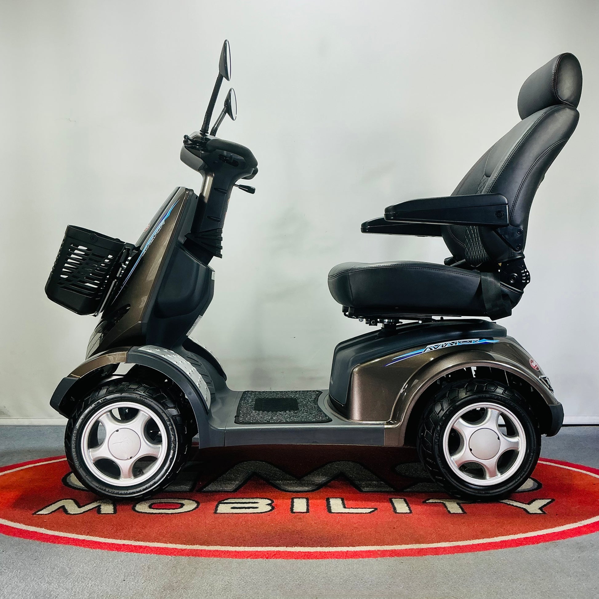 Choosing the Aviator means choosing effortless comfort and convenience - regardless of your shape or size. The fully adjustable seat and armrests help you to quickly find a driving position that works for your body and its limitations, and the robust frame has a maximum capacity of 196kg (30st 12lb), so it’s a great choice for those of a larger build. Other useful features for extra convenience include a large shopping basket up front and even a drink holder!