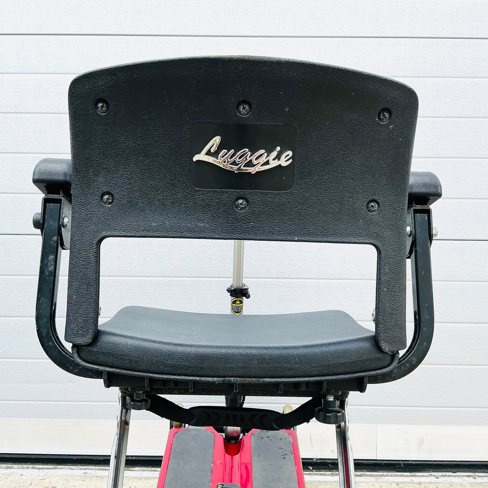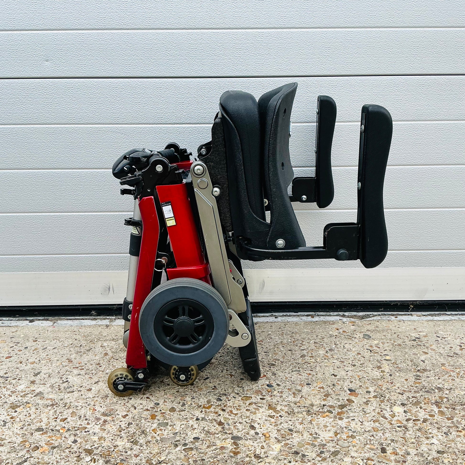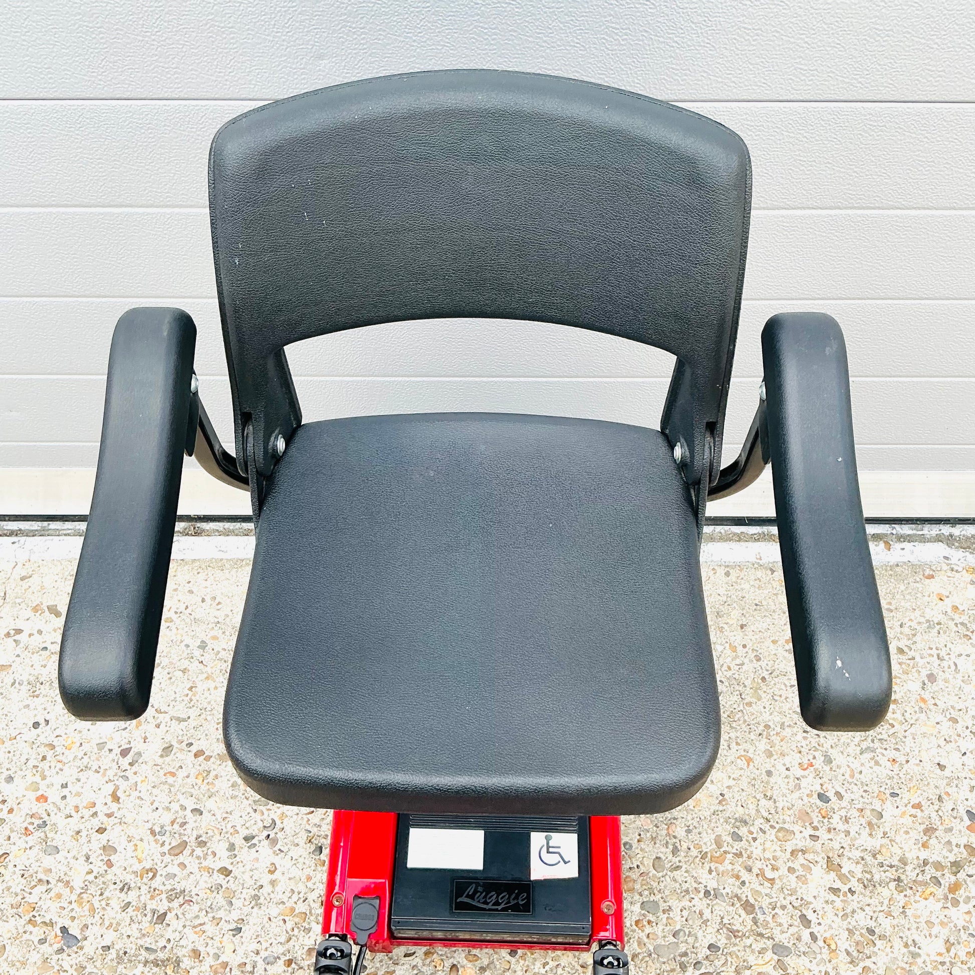 Freerider Luggie, a transportable manual folding 4 mph pavement mobility scooter that comes fully tested with the charger, optional armrests, tested Lithium battery and a 3-month warranty included.