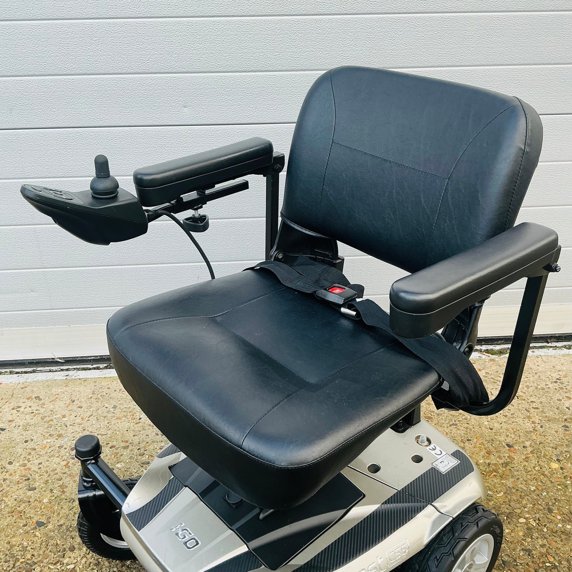 Pre-owned I-Go Crest CSS 4-mph compact deluxe portable powerchair, which comes fully tested with charger, brand new batteries, user manual and a 3-month warranty.