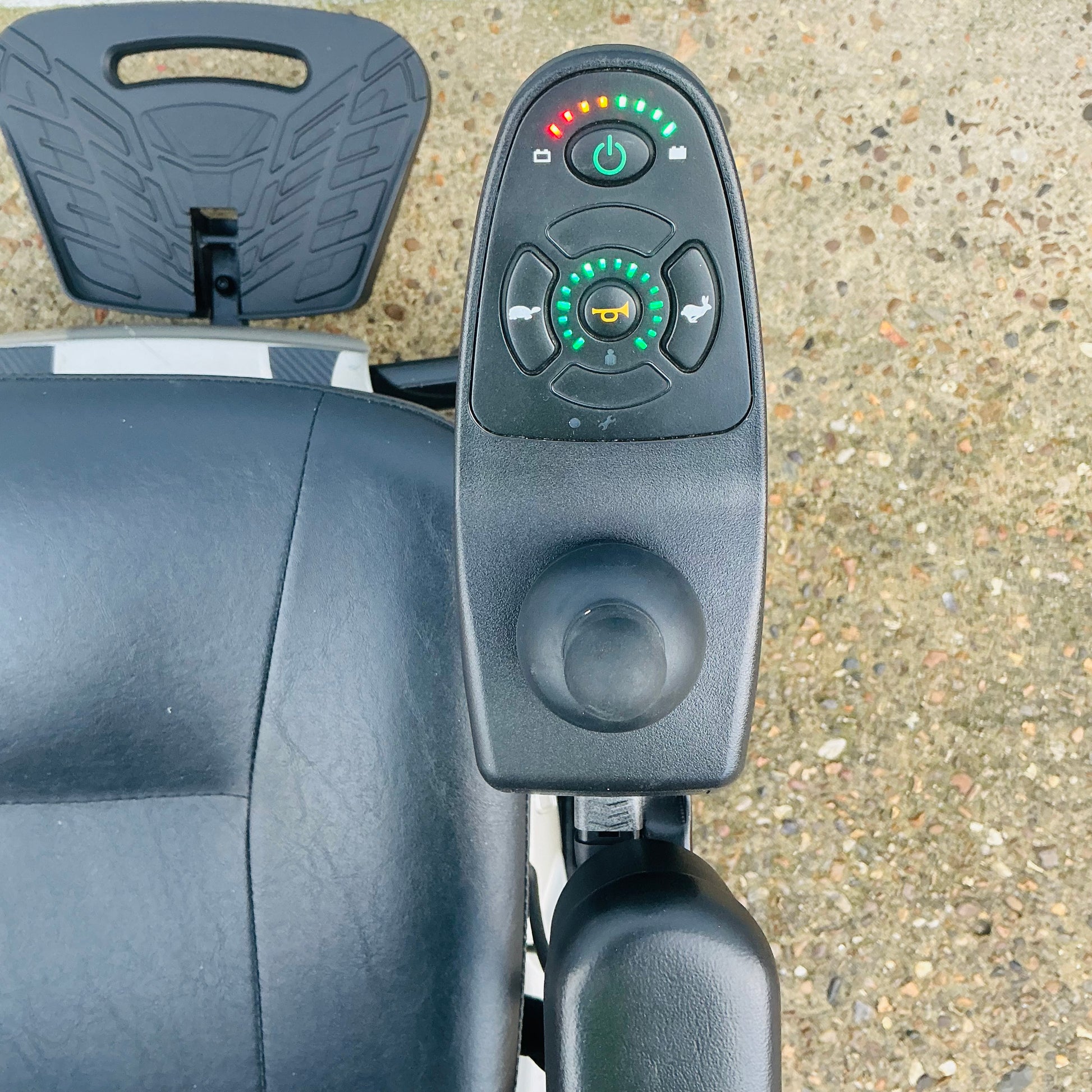 Twin batteries with 20Ah capacity give this powered wheelchair a range that competes with full size mobility scooters. There’s a useful LED display at the top of the control panel, so you always know how much power you have left before the next charge. When the time eventually comes to plug in, it couldn’t be easier. Either charge the batteries in situ or remove the battery pack to charge indoors.