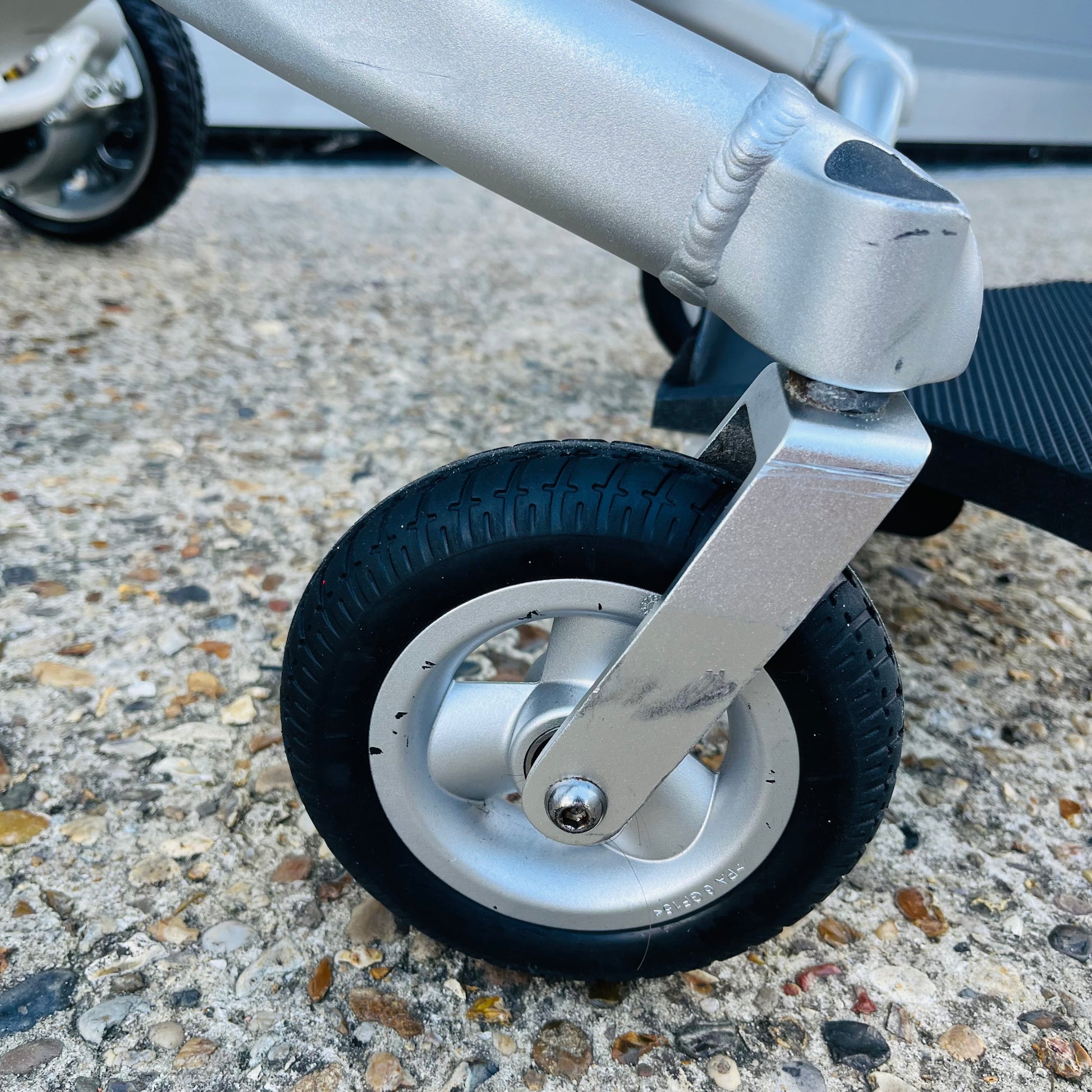 Some of the great features include it having a very comfortable cushioned seat (more comfortable than most in our opinion), a 15 mile range, 18 stone weight capacity, puncture-proof wheels and folds easily, making it ideal for cars, buses, trains and planes!