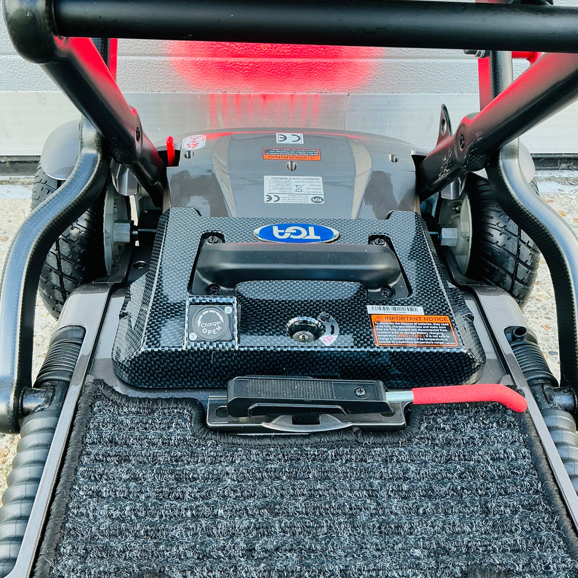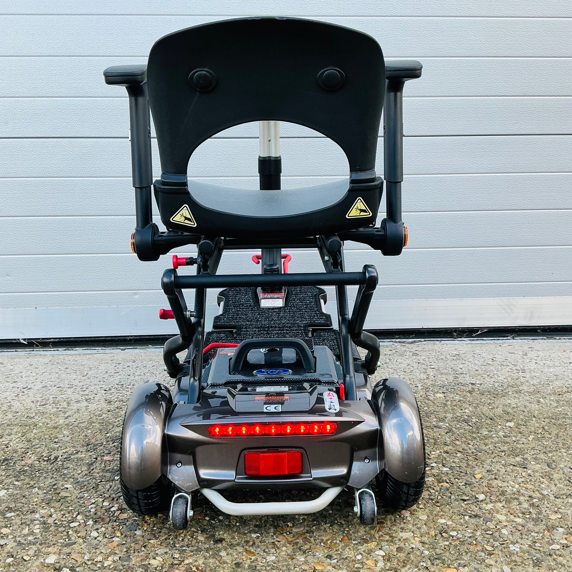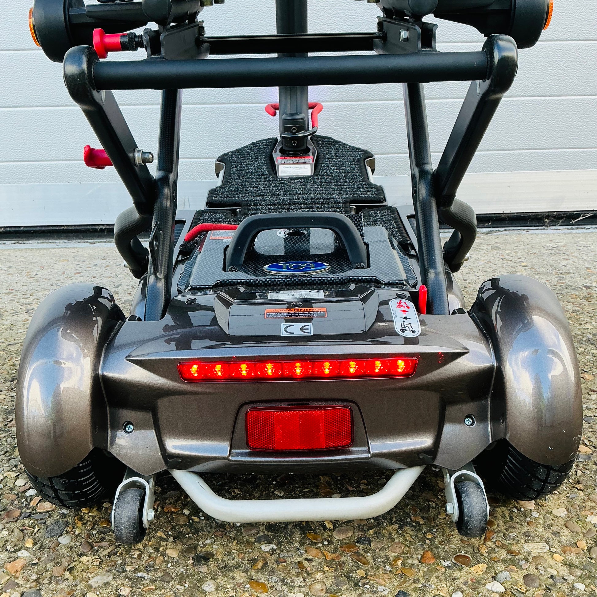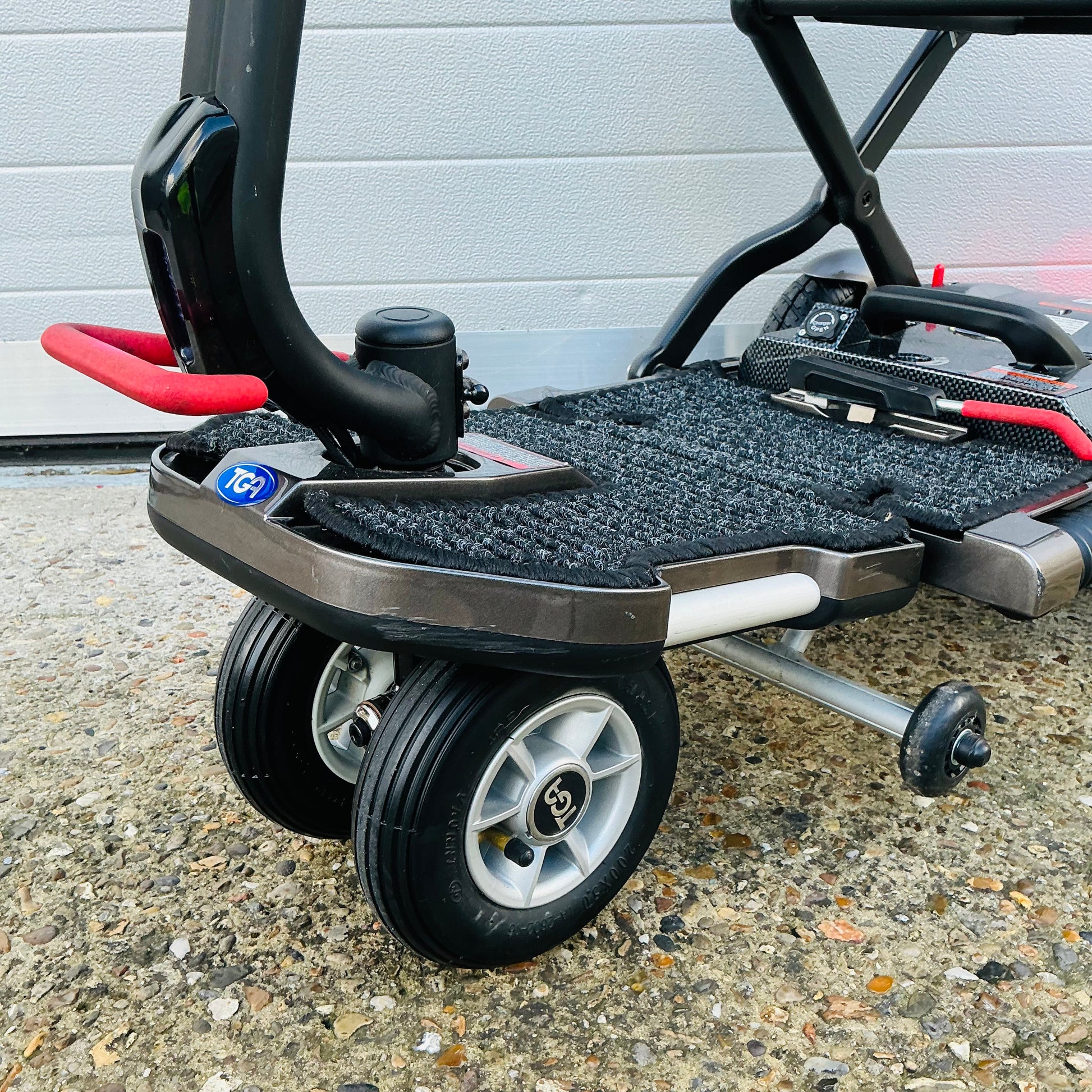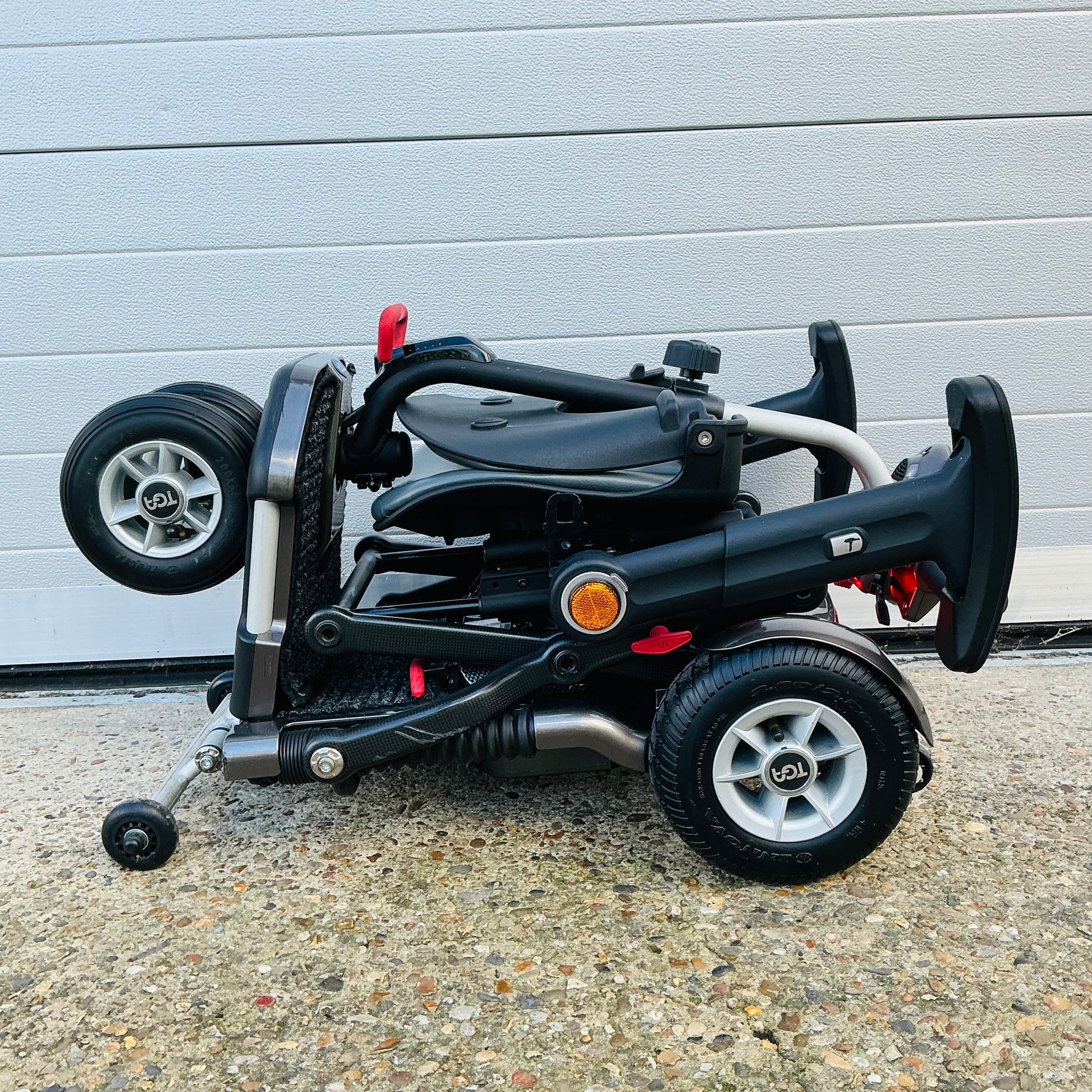 2017 TGA Minimo Plus 4, a transportable manual folding 4 mph pavement mobility scooter that comes with a fully tested airline friendly lithium battery and charger (in excellent order), user manual and a 3-month scooter warranty included.