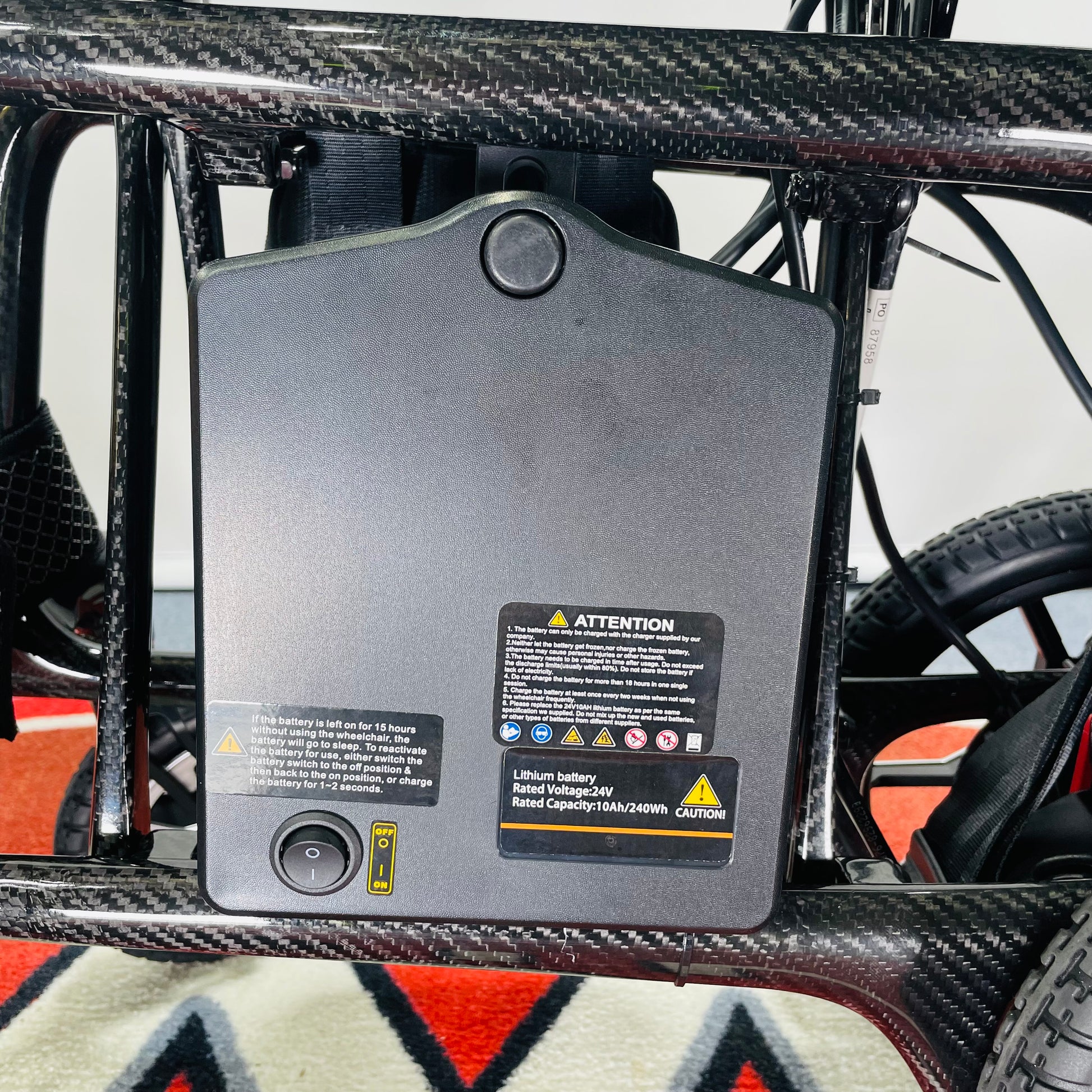 GMS Mobility is pleased to offer for sale this 2024 ex-demo Zora Carbon Fibre Portable Folding Electric Powerchair. This is the world's lightest powerchair (13kgs!) but still has all the features that you would expect from a powerchair. Includes the fully tested airline friendly Lithium battery (in excellent order), user manual and charger. Ask us about Insurance, Extended Warranty and Part Exchange.