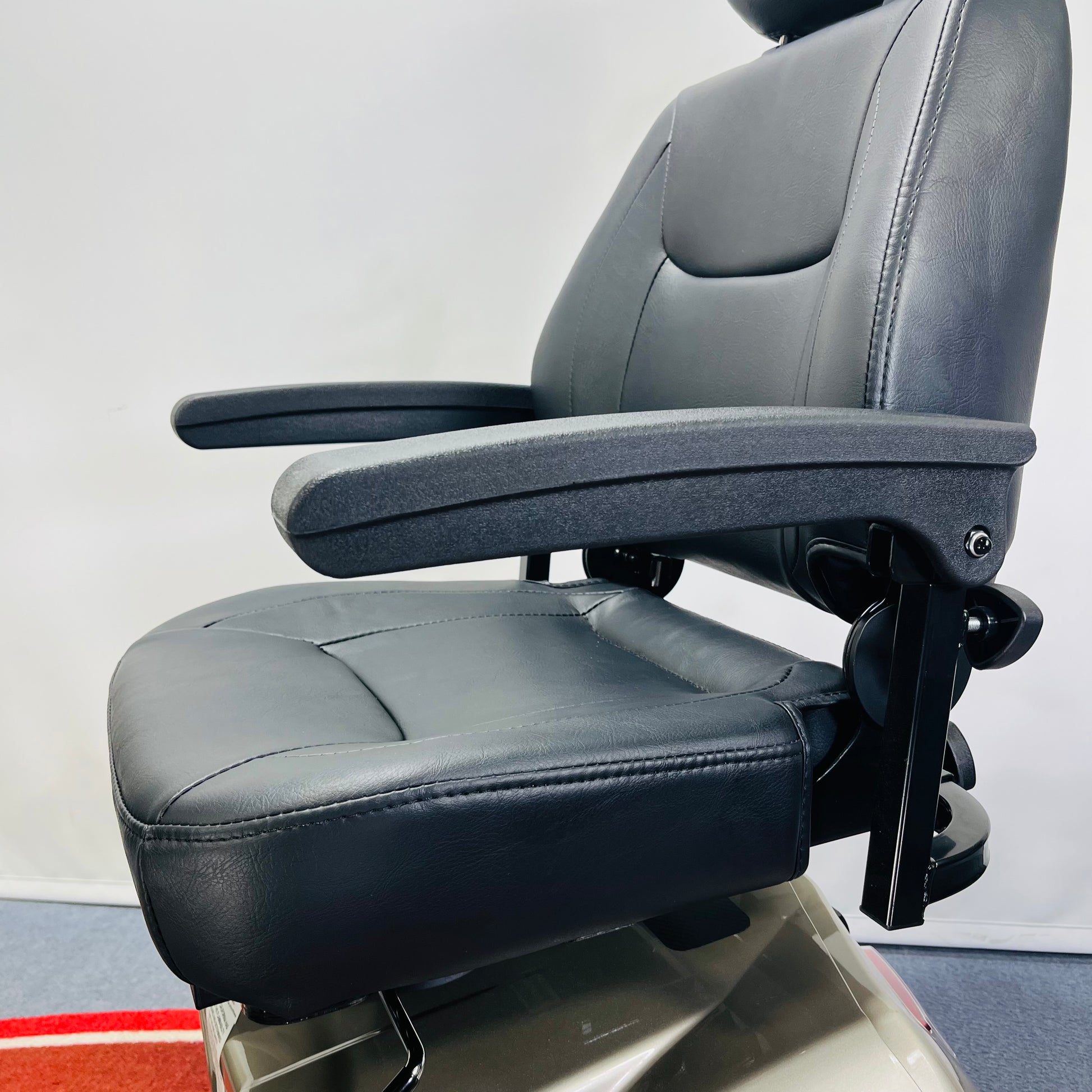 This versatile scooter is equally at home on the road or the pavements. With a top speed of 8mph, it can cover long journeys in no time, then with a flick of a switch, you can limit the speed to 4mph for safe use in pedestrian areas or around the shops. Comfort is guaranteed thanks to front and rear suspension, pneumatic tyres, and a well-padded adjustable captain seat.