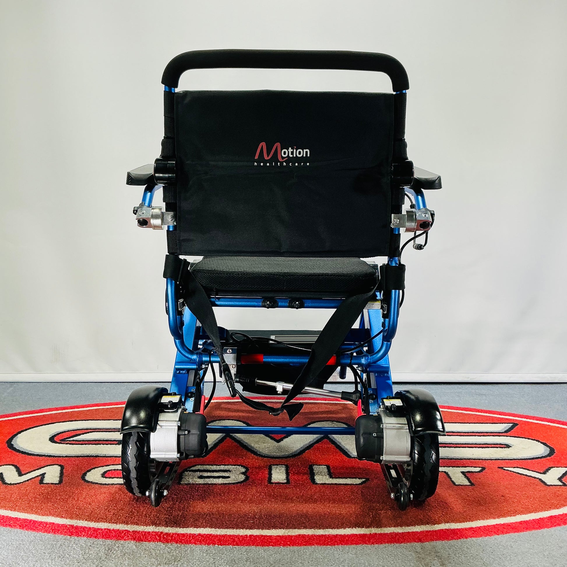 Motion Healthcare's Foldalite range are well-known as high-quality innovative folding powerchairs. The Motion Healthcare Foldalite Pro Powerchair can be easily folded up for transport, and stood up and wheeled for convenient storage. It weighs just 26.5 kg, and comes with light Lithium batteries, which can be removed - allowing for on or off-board charging.