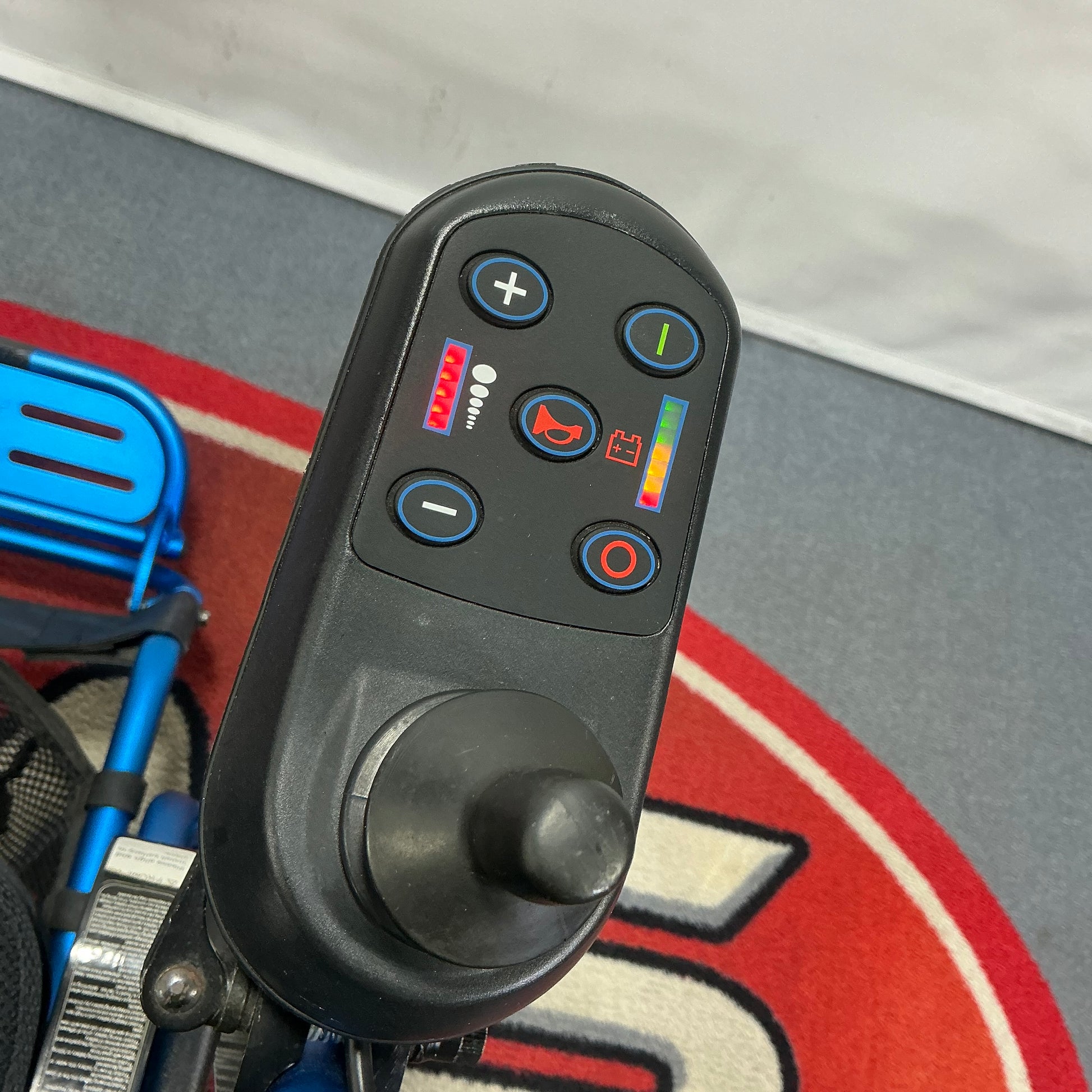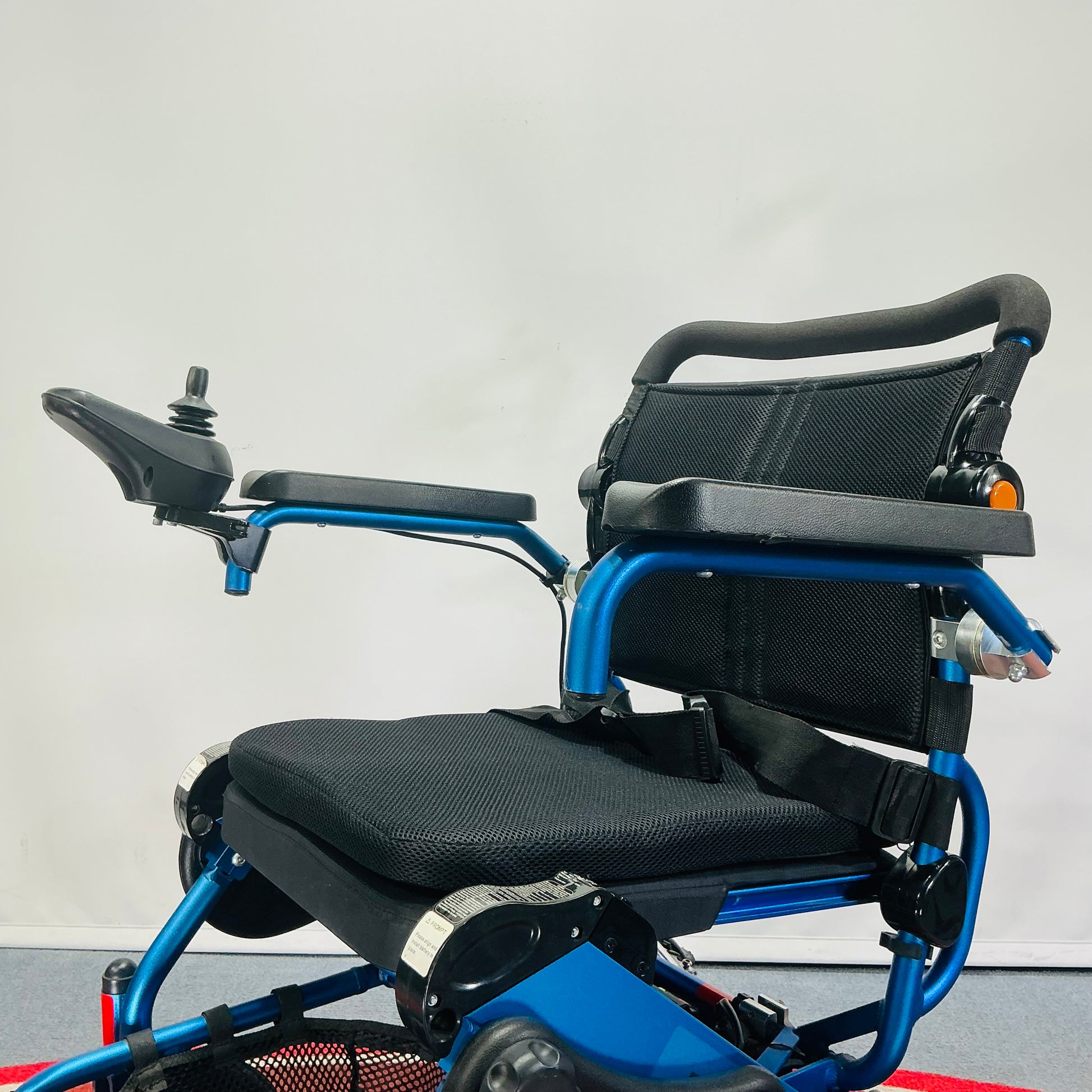 Value doesn’t mean the bare necessities when it comes to the Motion Healthcare Foldalite. It boasts an advanced battery display, USB socket, automatic shut down and an SOS emergency alarm. The joystick has a digital display and can be fitted on either the armrest or the backrest for attendant control. 3 different control sensitivities are available, to adjust how reactive the joystick is. An off board charge cable allows the user to charge both lightweight lithium batteries at the same time if needed.