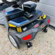 Some of the great features include a larger 18ah battery pack, front and rear suspension, solid tyres, a 21 stone weight capacity, a 12-15 mile range and disassembles for easy transportation (seat, batteries, rear wheels/motor section and the steering column tiller folds down).