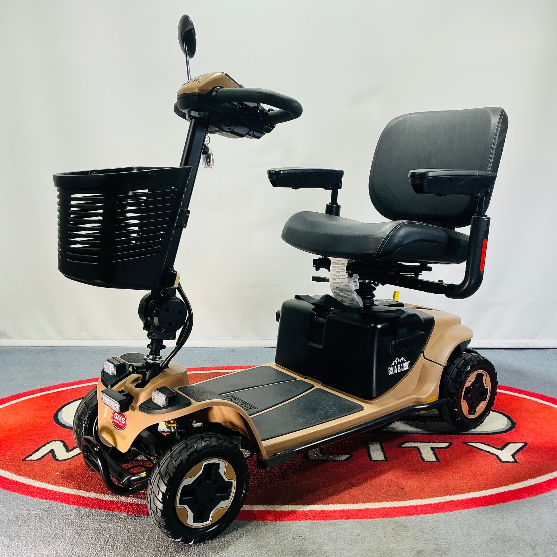 GMS Mobility is pleased to offer for sale, this fantastic value and very popular 2023 Pride BAJA Bandit, a compact all-terrain transportable 8mph road legal mobility scooter which comes with fully tested 20ah lithium battery pack (in excellent order), charger, a user manual and a 6-month scooter warranty is also included. Ask us about Insurance, Extended Warranty and Part Exchange.