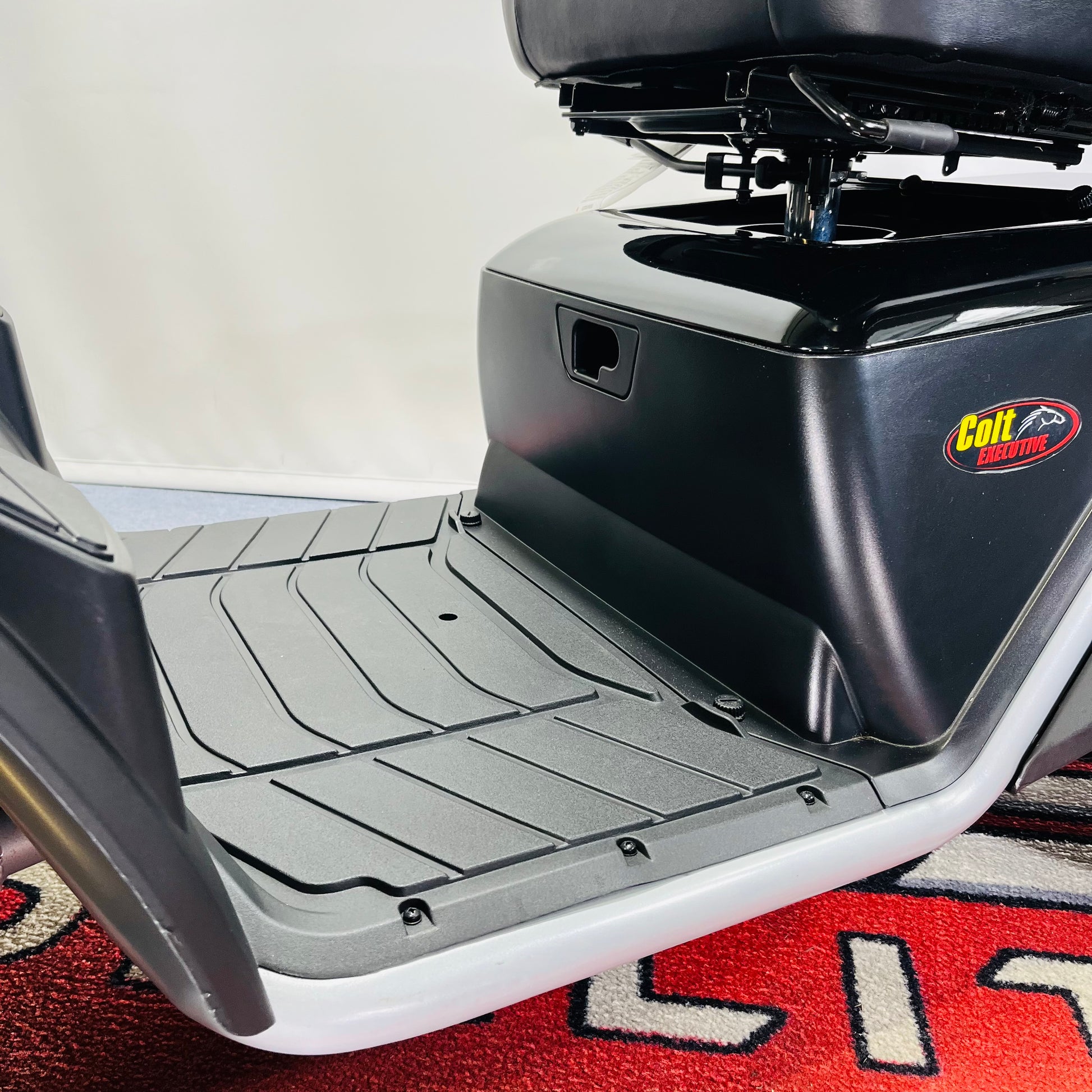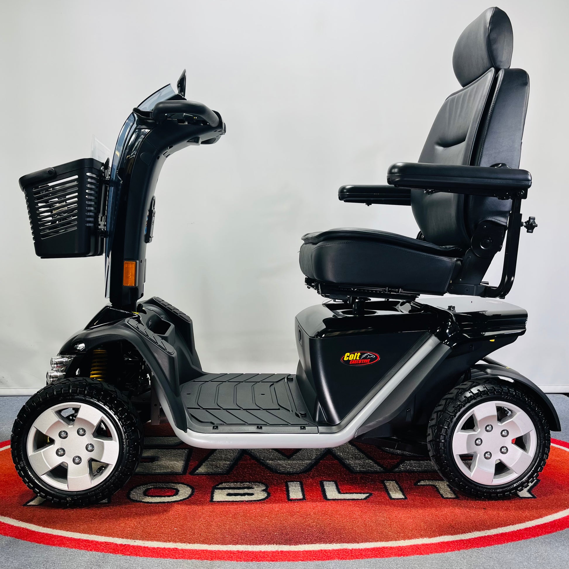 The largest 8mph mobility scooter from the ‘Pride Scooter’ range, the Colt Executive is bristling with high-performance features like full suspension, low-profile tyres and a hydraulic sealed brake system, the Colt Executive is a blend of power and precision. The Colt Executive features sleek style and a wealth of standard luxury touches like a wraparound delta tiller, new double A-arm suspension, new terrain gripping pneumatic tyres and LED lighting, making it the ultimate outdoor scooter.