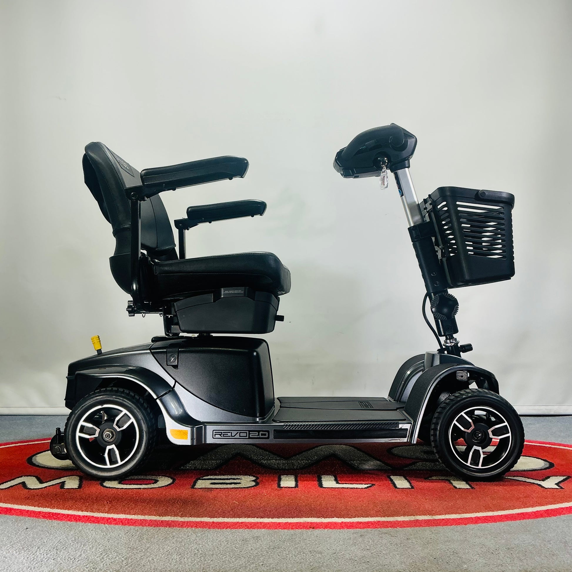The all new Pride REVO 2.0 mobility scooter is a stylish, sporty mobility scooter that offers comfort and capability in equal measure. Fitted with the trade-marked Pride Mobility scooter Comfort-Trac Suspension system, the ride quality is exceptional for a mobility scooter in this class. This model now comes with pneumatic tyres as standard to further improve the ride quality.