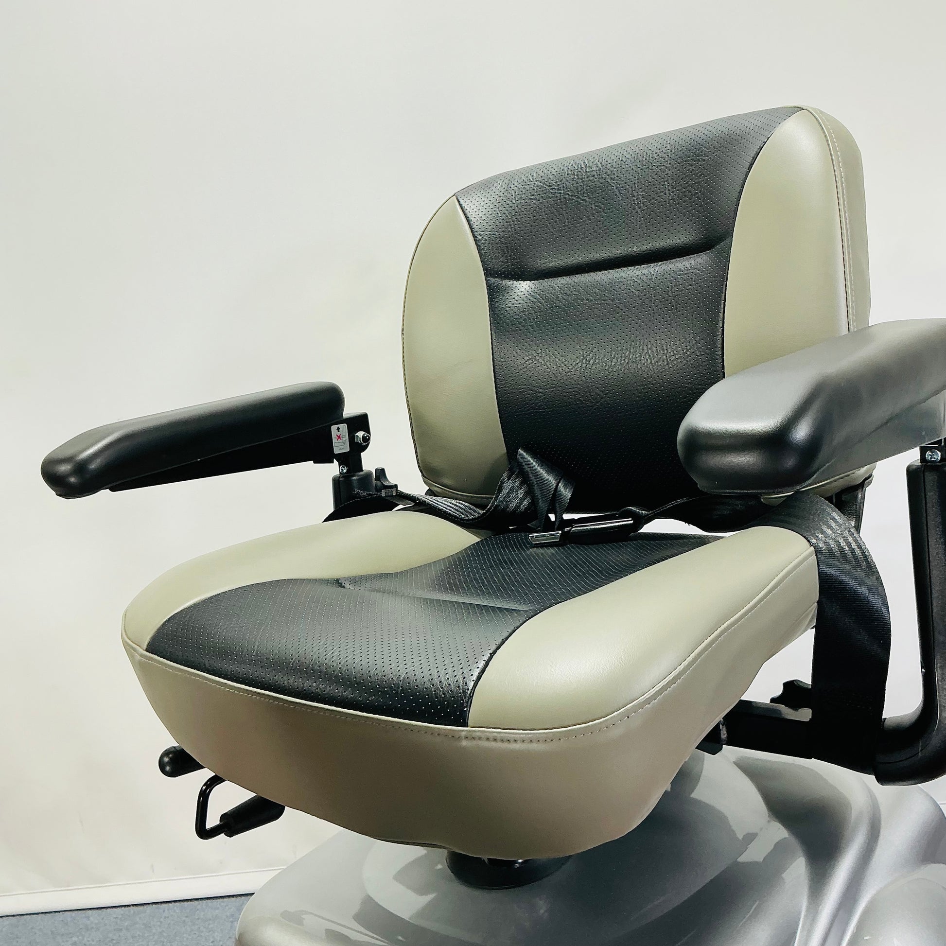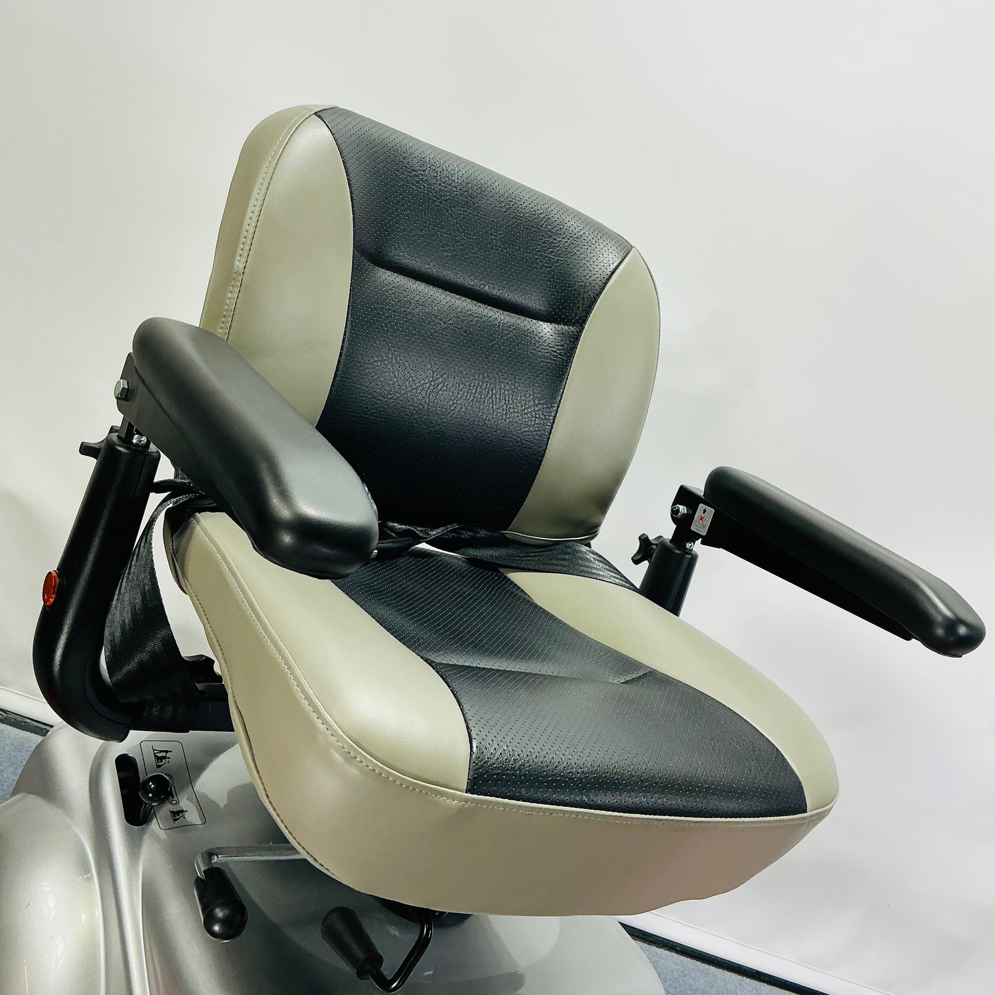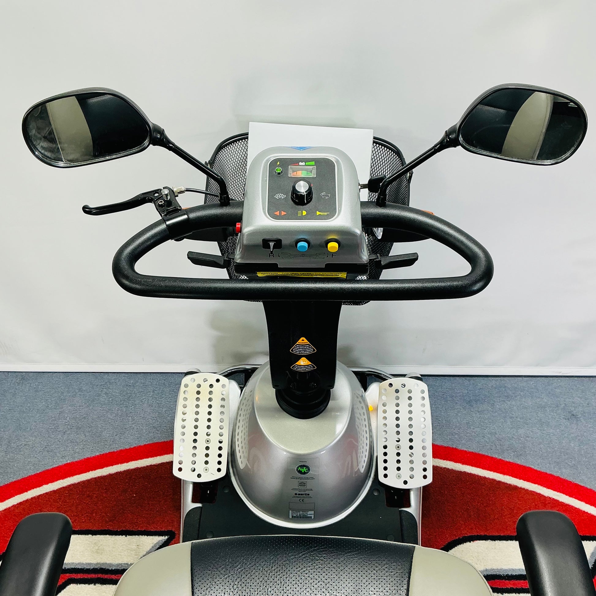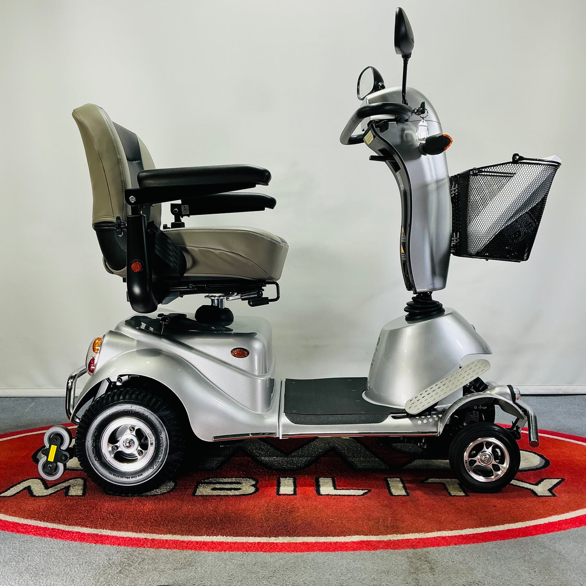 Some of the great features include a fantastic turning circle, large pneumatic tyres for unrivalled comfort, a 25-stone weight capacity, super-bright LED lights, large storage basket, a 25-mile range, a comfortable padded seat with the optional adjustable armrests included and 5-wheel anti-tip technology. Possibly the most comfortable to drive medium-to-large size scooters!