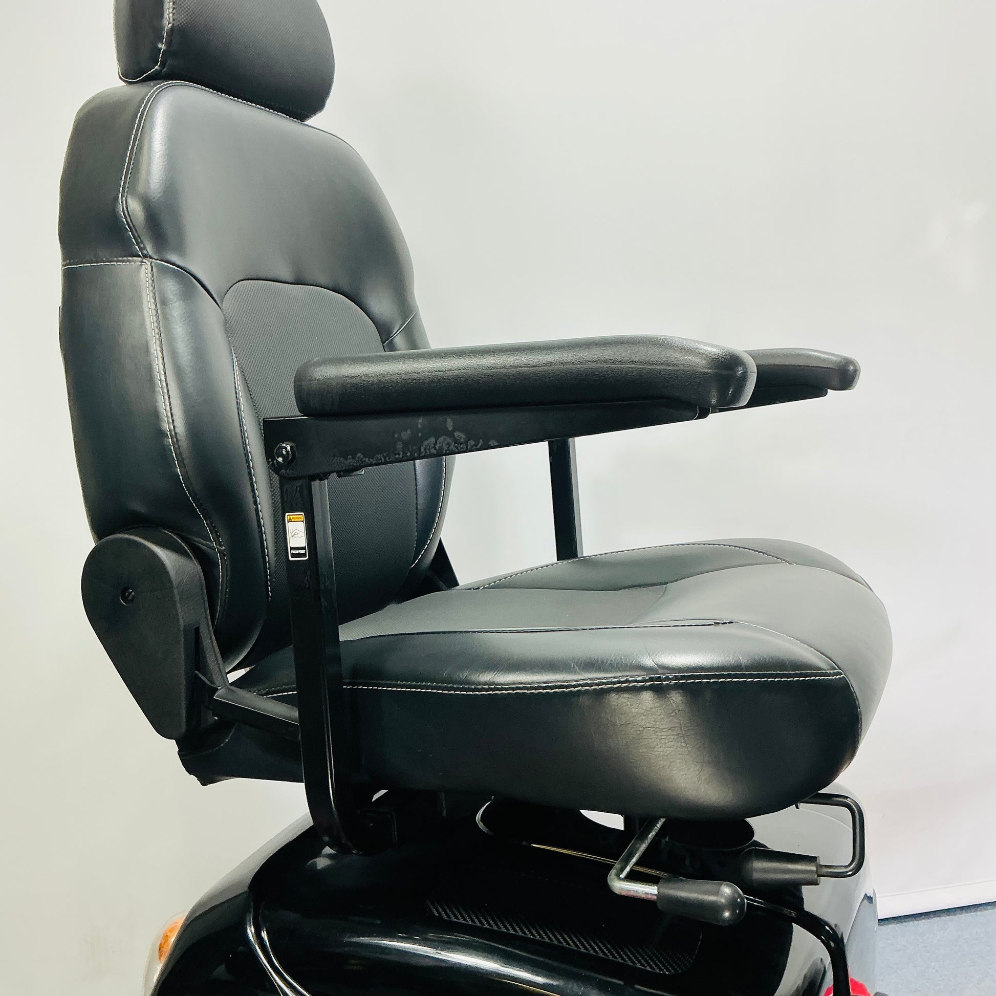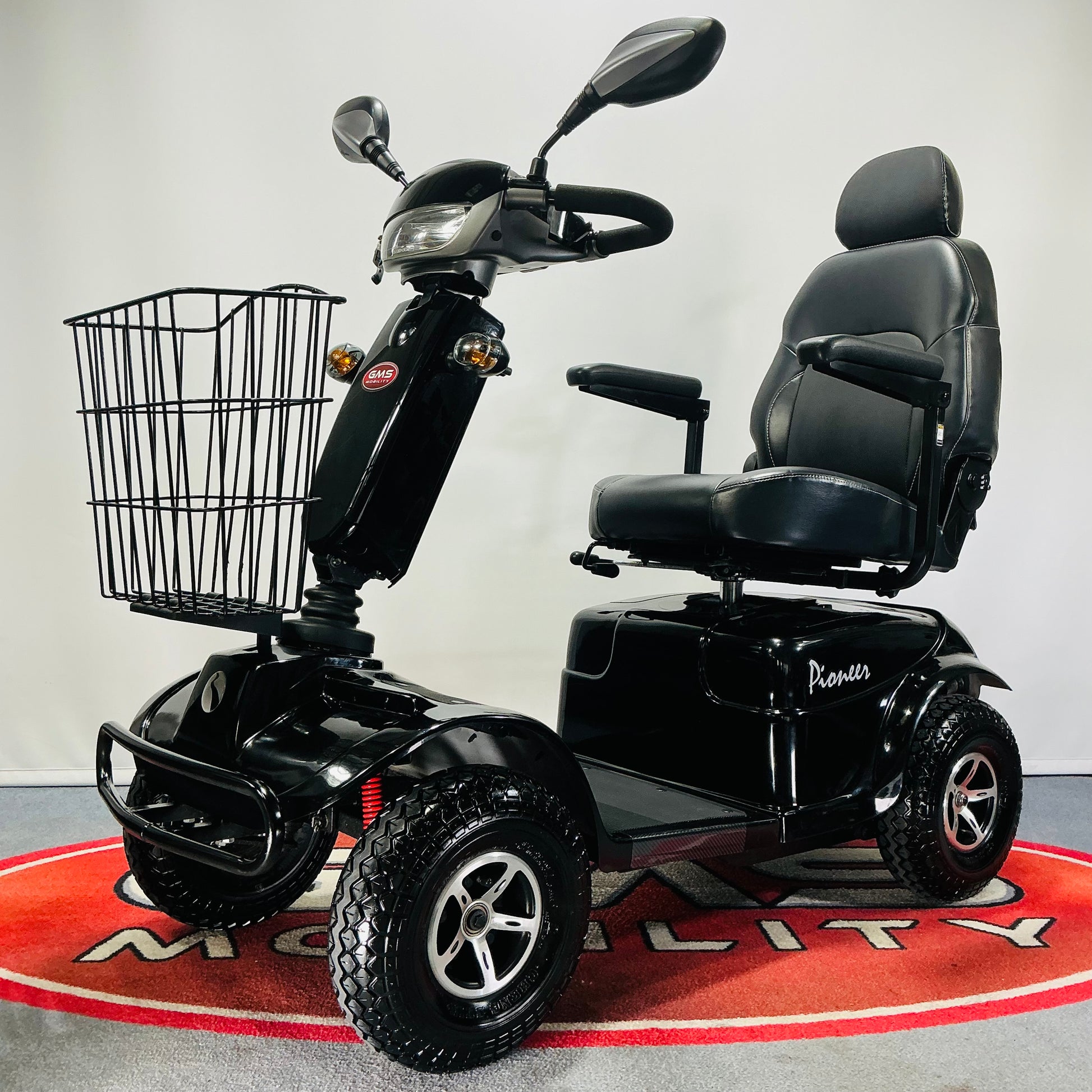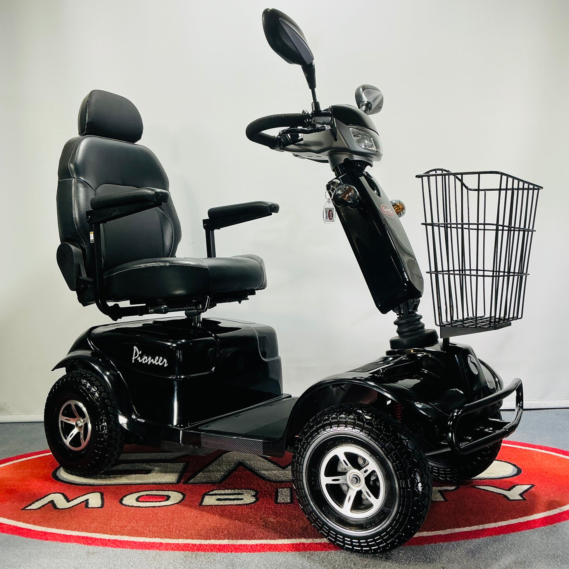 It features a delta-bar tiller with adjustment, a sliding swivel seat with headrest and padded arms as well as showerproof switches and a large basket making the Pioneer one of the most popular scooters on the market.