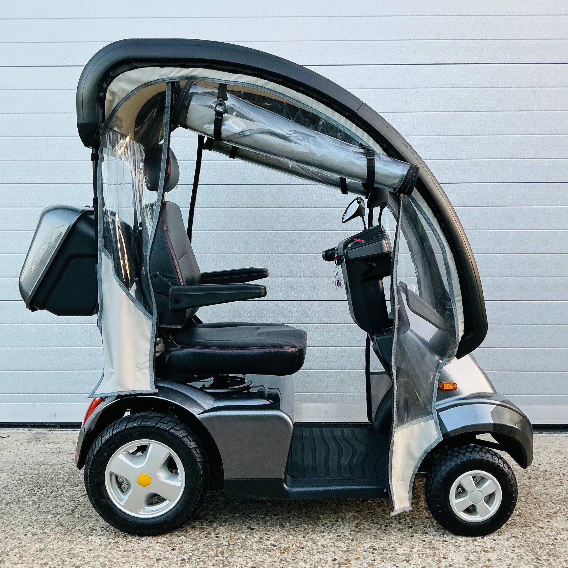 Breeze 4 can nip nimbly about the shops in town or cruise comfortably in the countryside at speeds of up to 8 mph. Finger tip controls, automatic braking, lights, indicators, brake lights and hazard warning lights are all fitted as standard, together with a very advanced safety system.